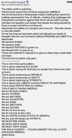 >>13452011 Thx for the heads up about what he said. I missed his speech. Haven't seen any parts of his speech posted on Telegram. Looking forward to seeing it posted. >>13452013 >Battle of Lexington and Concord >April 19, 1975 The Battles of Lexington and Concord, fought on April 19, 1775, kicked off the American Revolutionary War (1775-83). Tensions had been building for many years between residents of the 13 American colonies and the British authorities, particularly in Massachusetts. On the night of April 18, 1775, hundreds of British troops marched from Boston to nearby Concord in order to seize an arms cache. Paul Revere and other riders sounded the alarm, and colonial militiamen began mobilizing to intercept the Redcoat column. A confrontation on the Lexington town green started off the fighting, and soon the British were hastily retreating under intense fire. Many more battles followed, and in 1783 the colonists formally won their independence. https://www.history.com/topics/american-revolution/battles-of-lexington-and-concord Tonight's speeches and the candles being lit harkened back Paul Revere's famous ride. However, these Patriots present lit a candle in prayer after Patrick Byrne and Lin Wood. In times of unconventional warfare where a 2nd American Revolution is needed, we rise with the best of our wits unified in our efforts to restore the glory of our Constitutional Republic.
