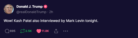 Kash: Clinton Obama Bush Trump as former Presidents should all be treated equallyRoosterAug 21, 20221 min readhttps://truthsocial.com/@realDonaldTrump/108863622585331221 https://truthsocial.com/@KarliBonne/108863810358328475 https://rumble.com/c/RedpillUSAPatriots